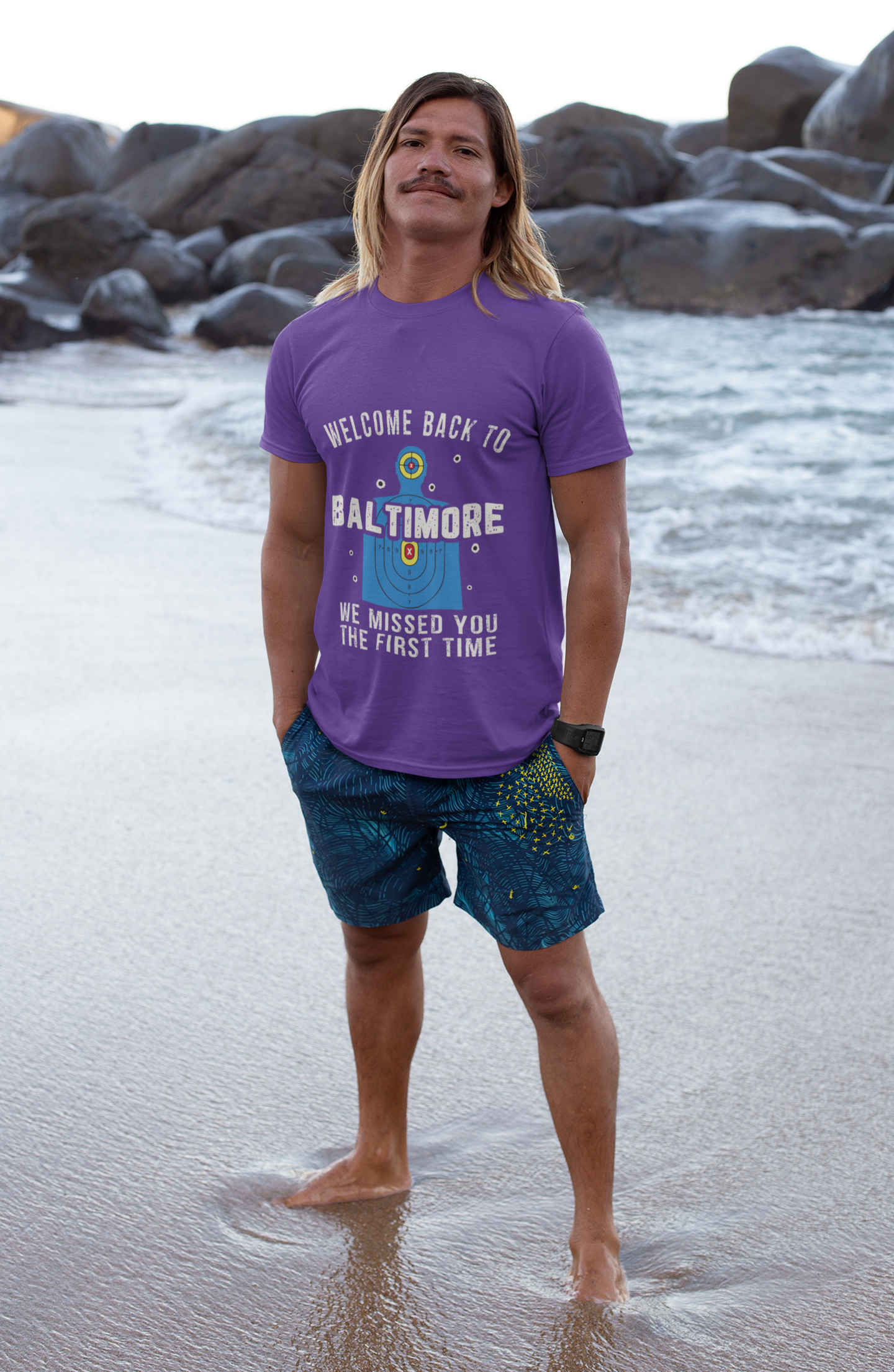 Men's Welcome to Baltimore Funny Shooting Target T-Shirt “We Missed You the First Time” Tee